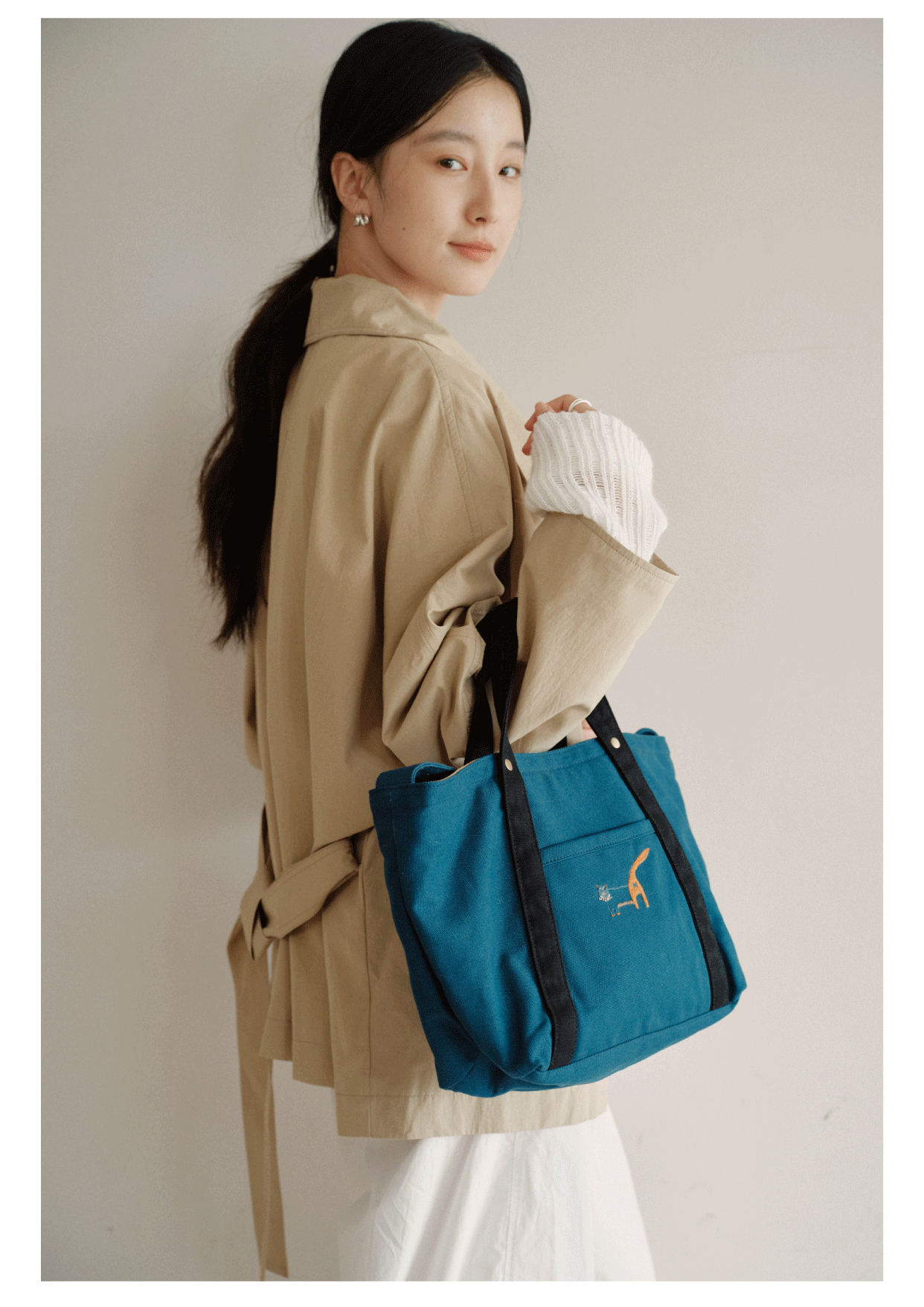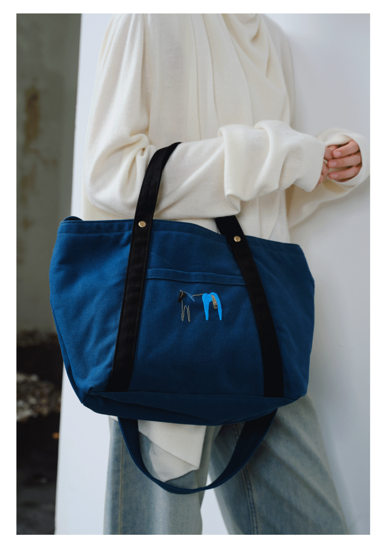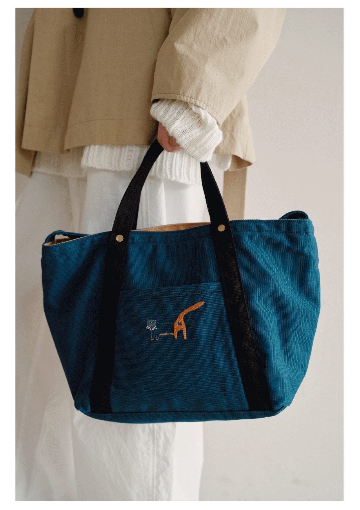 Teto Reve, designer premium minimalist canvas bag, hand embroidered tote bag, casual and versatile